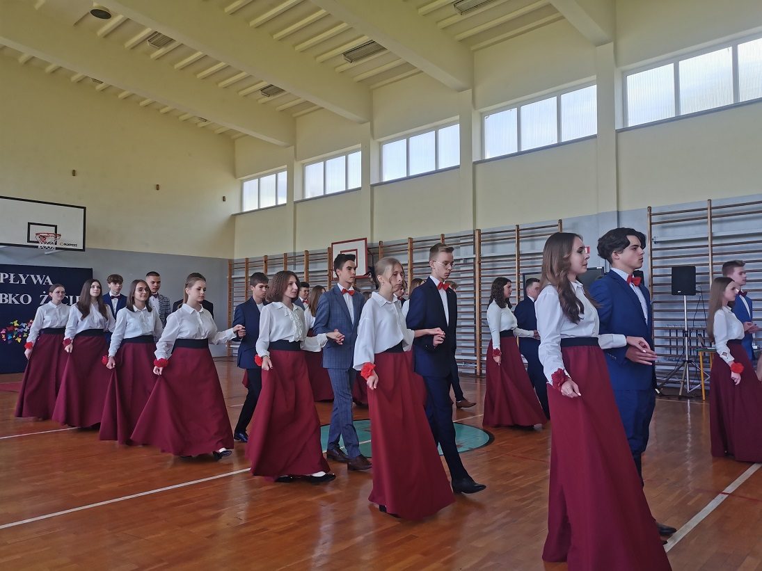 Pożegnanie Ósmoklasistów 22.06.22r.Dostojny polonez wykonany przez ósmoklasistów rozpoczął uroczystość. Uczniowie, przygotowani przez panią Justynę Płatek, wykonali taniec perfekcyjnie, wywołując spore wrażenie na zebranych w sali gościach – rodzicach, nauczycielach oraz przedstawicielach lokalnego samorządu, z panią wójt Bożeną Kwiatkowską, na czele. Słowa uznania popłynęły również z ust przewodniczącego Rady Gminy- pana Marka Bogusza, jak również od księdza proboszcza – Włodzimierza Tendorfa.