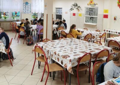 Warto dodać, że w czasie przerwy obiadowej w godzinach 11:00-12.30, pod opieką wychowawców, dzieci ze świetlicy mogą zjeść obiad w stołówce szkolnej.