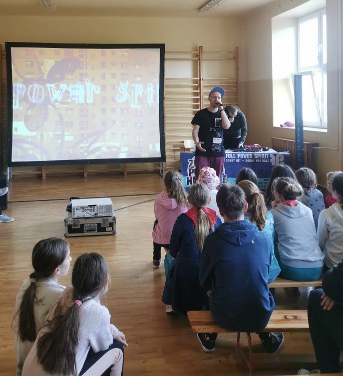 Podczas występu w naszej Szkole w dn. 26.04.2022r. panowie zaprezentowali kilka utworów, ilustrowanych bogato prezentacją multimedialną, stworzoną